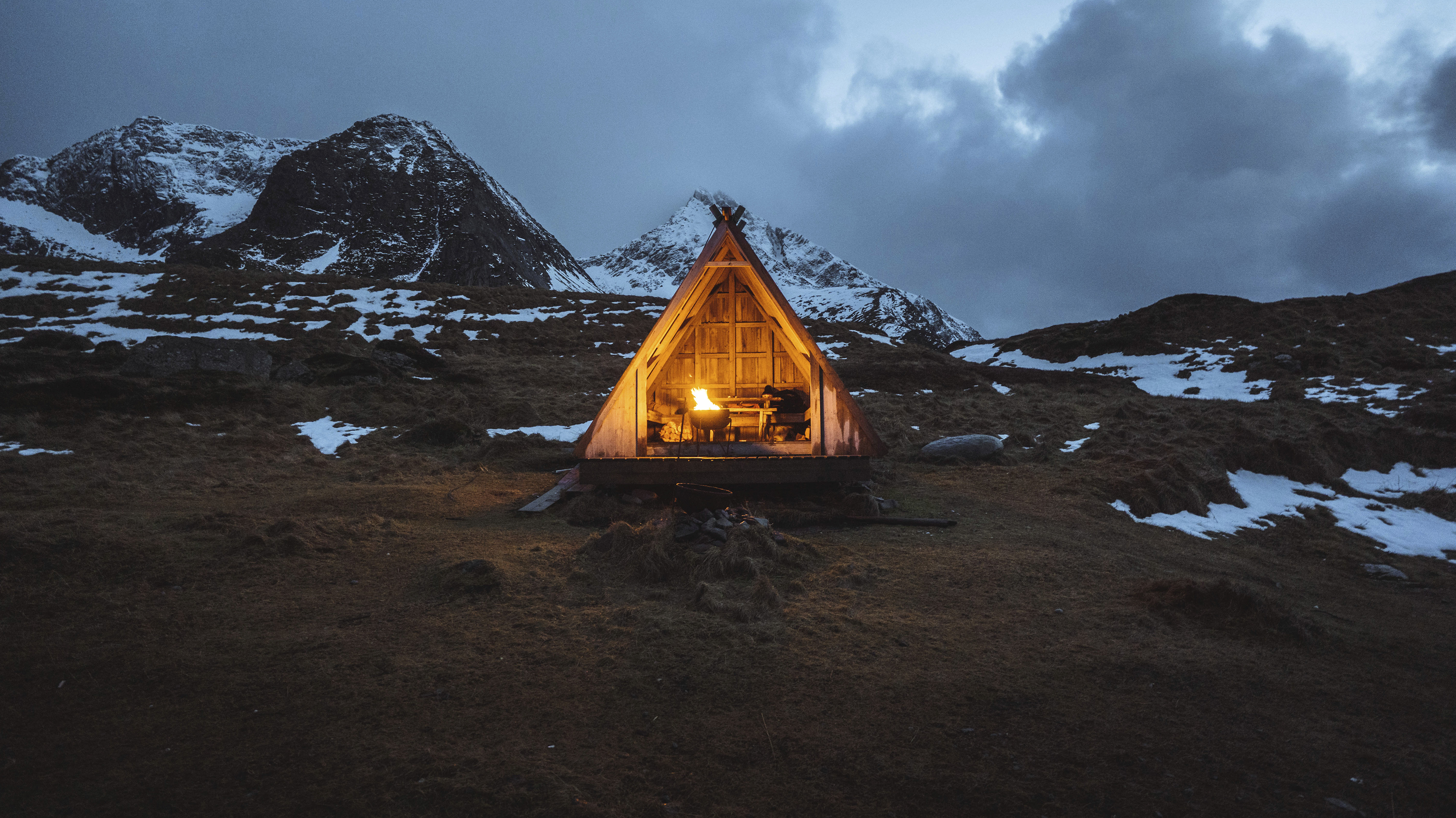 挪威罗弗敦岛上木屋内的火坑